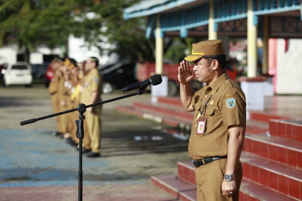 TANJUNG SELOR – Penjabat (Pj.) Sekretaris Daerah Provinsi (Sekprov) Kalimantan Utara (Kaltara) Dr. Bustan, S.E., M.Si memimpin apel pagi gabungan di lingkup Pemerintahan Provinsi (Pemprov) Kaltara di Lapangan Agatis, Senin (15/12).