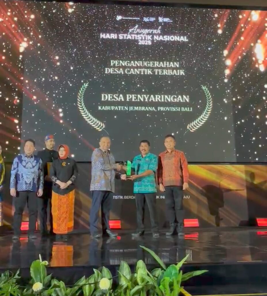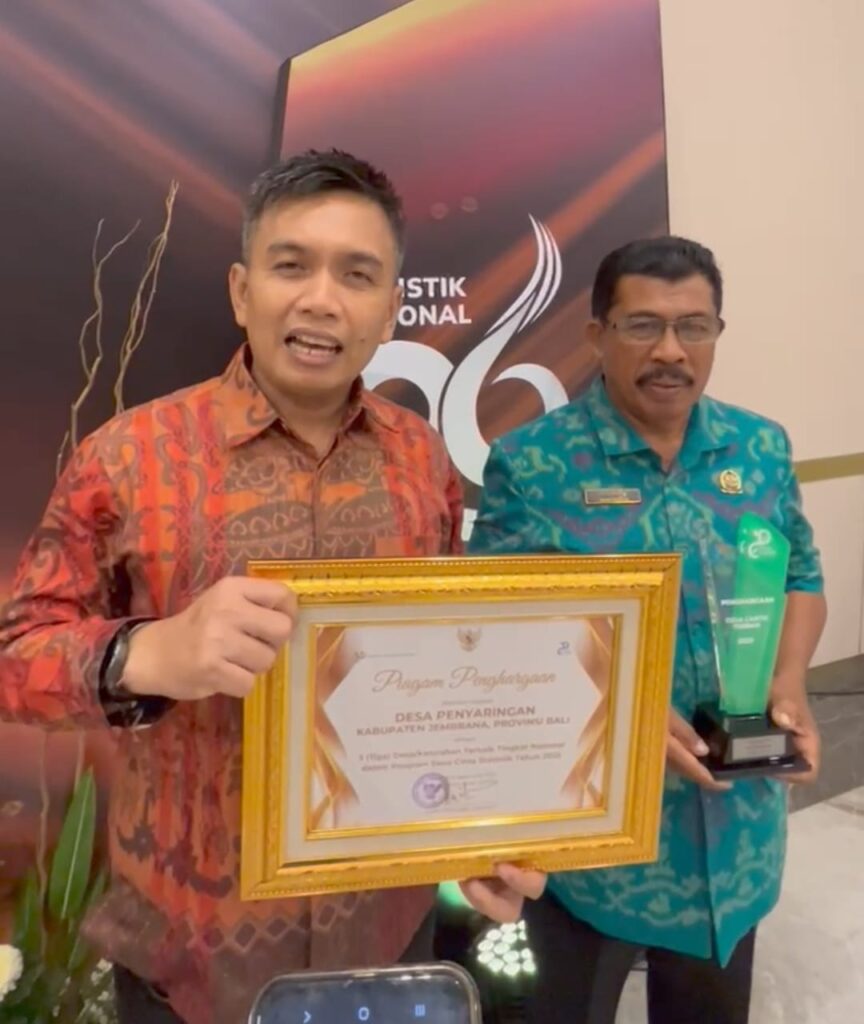 Penghargaan tersebut diterima langsung oleh Wakil Bupati Jembrana I Gede Ngurah Patriana Krisna (Ipat) bersama Kepala Desa Penyaringan I Made Dresta di Jakarta, Jumat (26/9/2025). Usai penyerahan penghargaan Wabup Ipat mengapresiasi keseriusan Desa Penyaringan. Hal ini menjadi bukti kualitas dan konsistensi desa dalam mengelola data statistik.
