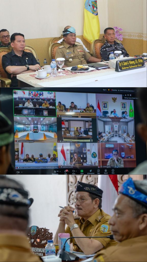 Gubernur dan Wakil Gubernur Kaltara (Dr H Zainal A Paliwang, SH., M.Hum – Ingkong Ala, S.E., M.Si) selaku bagian dari Kaltara turut hadir dalam Rakor tersebut secara virtual, Senin (20/10).