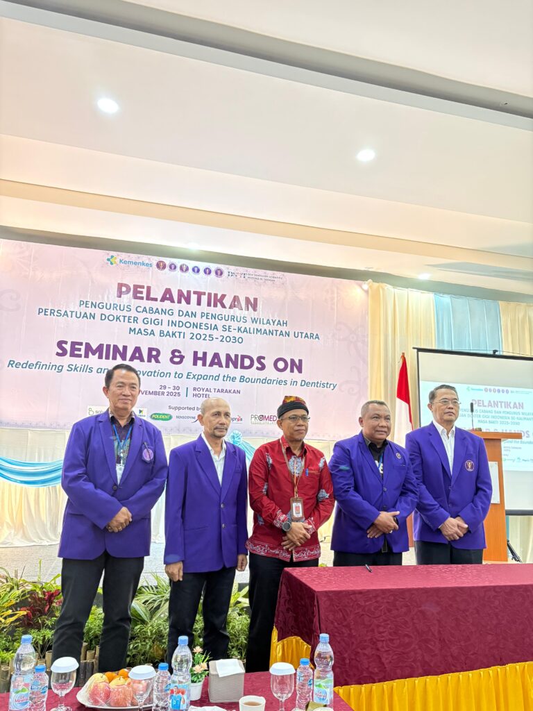 TARAKAN-drg.Imam Sujono M.A.P.,Dilantik Menjadi Ketua PDGI Kalimantan Utara Masa Periode 2025-2030 yang Dilantik Oleh Ketua PB PDGI Jakarta Drg Usman Sumantri, Msc, yang Dihadiri yang terhormat Gubernur Kalimantan Utara, yang diwakili oleh Ketua Pengurus Besar Persatuan Dokter Gigi Indonesia (PB PDGI), drg. Usman Sumantri, M.Sc, Kepala Dinas Kesehatan Provinsi Kalimantan Utara, Kepala Dinas Kesehatan Kota Tarakan, Kepala Dinas Kesehatan Kabupaten Bulungan, Rekan-rekan Ketua Organisasi Profesi, IDI, IBI, IAI, PPNI, PTGMI tingkat Provinsi Kaltara yang hadir atau mewakili Pengurus Wilayah, Ketua dan jajaran Pengurus Cabang PDGI se-Kalimantan Utara, dari PDGI Cabang Bulungan KTT, Cabang Malinau, Cabang Nunukan, dan tuan rumah Cabang Tarakan, Rekan-rekan sejawat Dokter Gigi dan drg. Spesialis yang saya cintai dan banggakan, Minggu 30 November 2025.