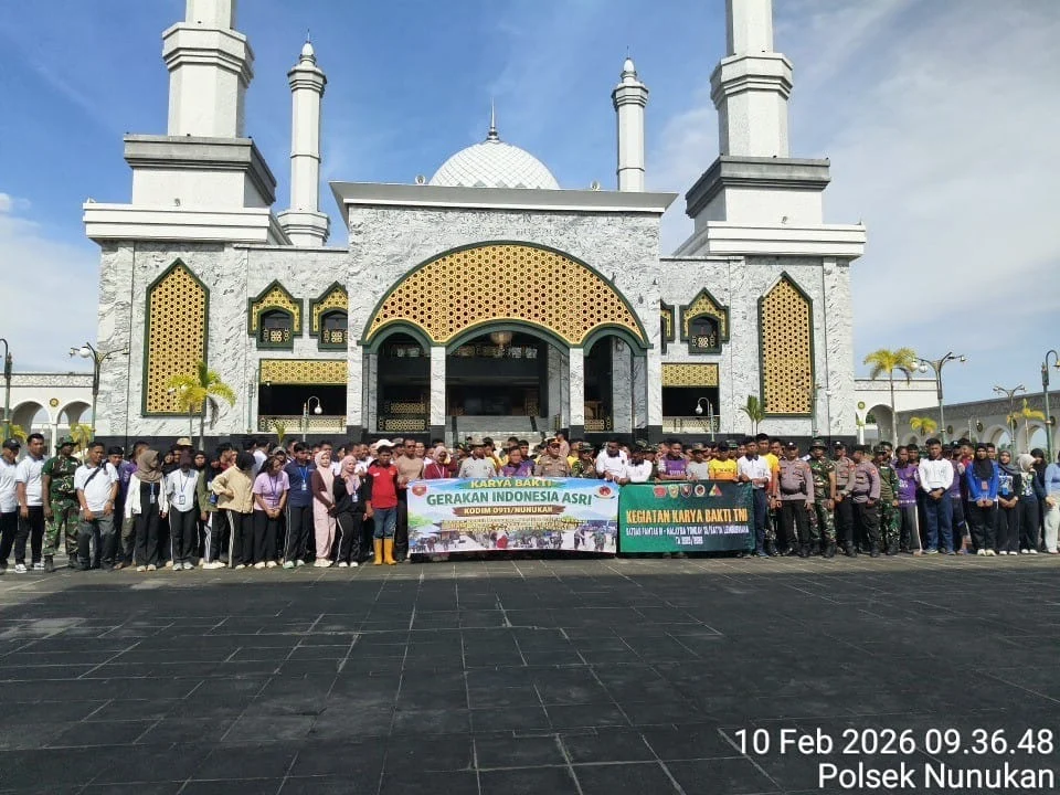 Nunukan – Kodim 0911/Nunukan bersama jajaran TNI-Polri, instansi pemerintah, serta masyarakat melaksanakan kegiatan Karya Bakti dalam rangka “Gerakan Indonesia Asri” pada Selasa (10/2/2026) di Islamic Center Nunukan, Jl. Sei Jepun, Kelurahan Mansapa, Kecamatan Nunukan.