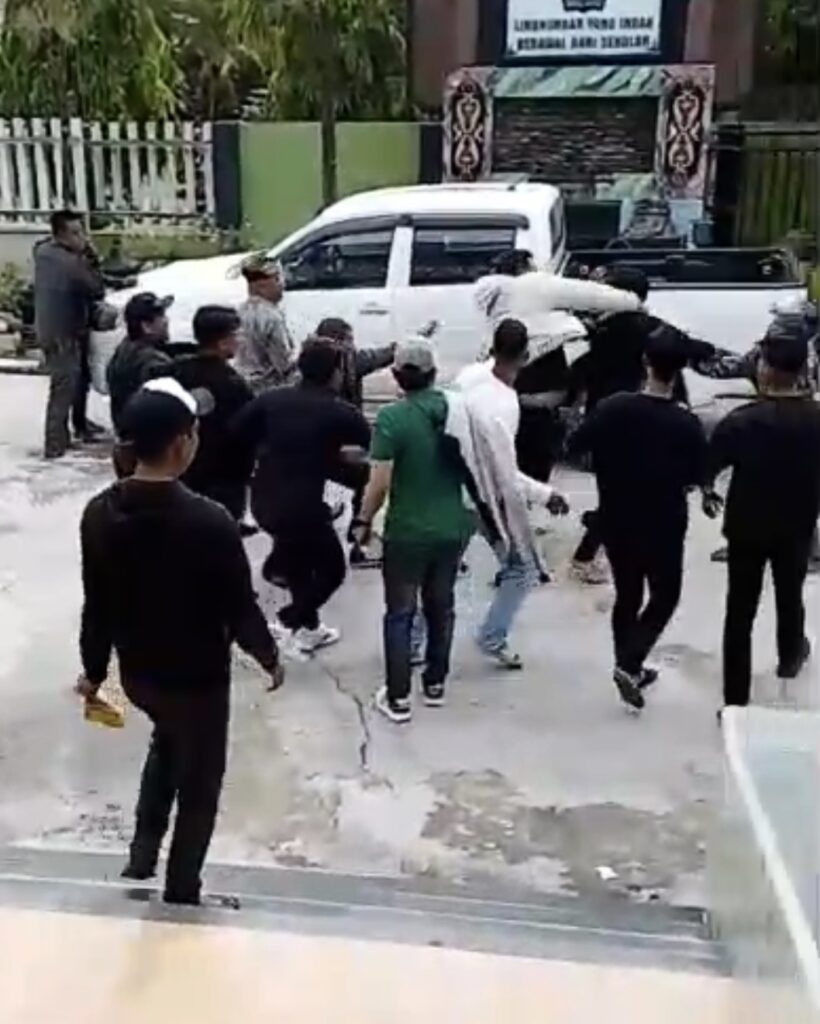 Tidak lama kemudian, ketegangan mulai mereda setelah tiga orang pelaku berinisiatif melerai dan mengeluarkan KN beserta rekannya dari tempat pengabsenan. Namun, sekitar pukul 08.30 Wita, KN datang kembali bersama rombongan yang merupakan kelompok Ormas Lembaga Yayasan Adat Tidung Dayak Bersatu dan langsung melakukan pemukulan terhadap HI. Akibat kejadian tersebut, HI melaporkan kejadian itu kepada pihak kepolisian setempat.