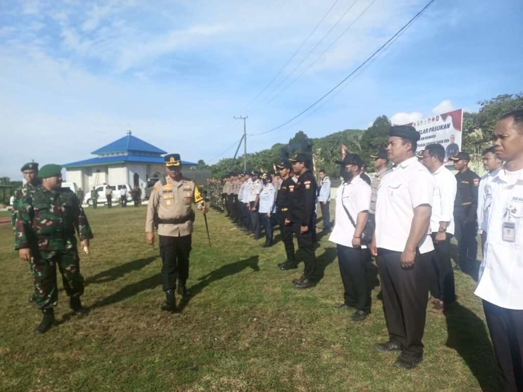 Pengecekan personel dilakukan dalam apel gelar kesiapan pengamanan pilkada, dan penyematan tanda anggota pengamanan.