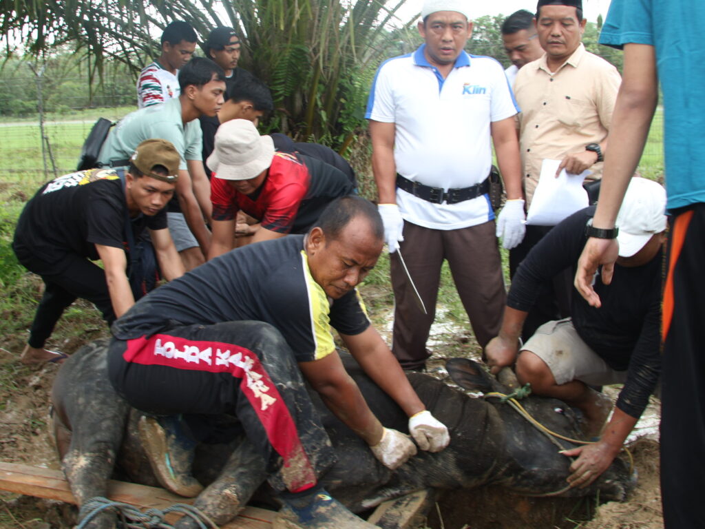 Proses pemotongan 5 ekor sapi kurban dilakukan dengan mengikuti prosedur kesehatan dan kebersihan yang ketat, sesuai dengan anjuran dari pihak terkait.