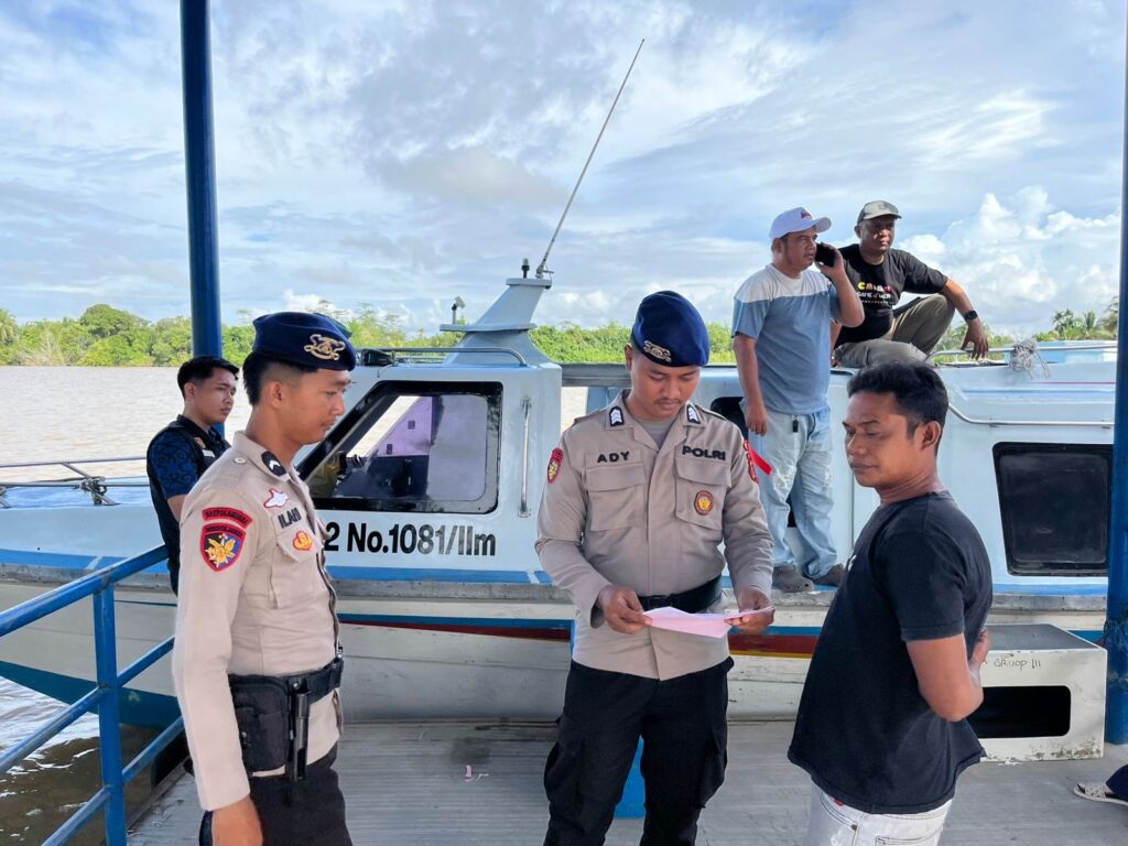 Patroli di Sekitar Pelabuhan Patroli rutin dilakukan dengan berjalan kaki atau menggunakan kendaraan dinas untuk memantau situasi secara langsung di sekitar pelabuhan dan area sungai, guna mendeteksi potensi gangguan keamanan atau pelanggaran yang bisa merugikan warga dan kelancaran aktivitas pelayaran.