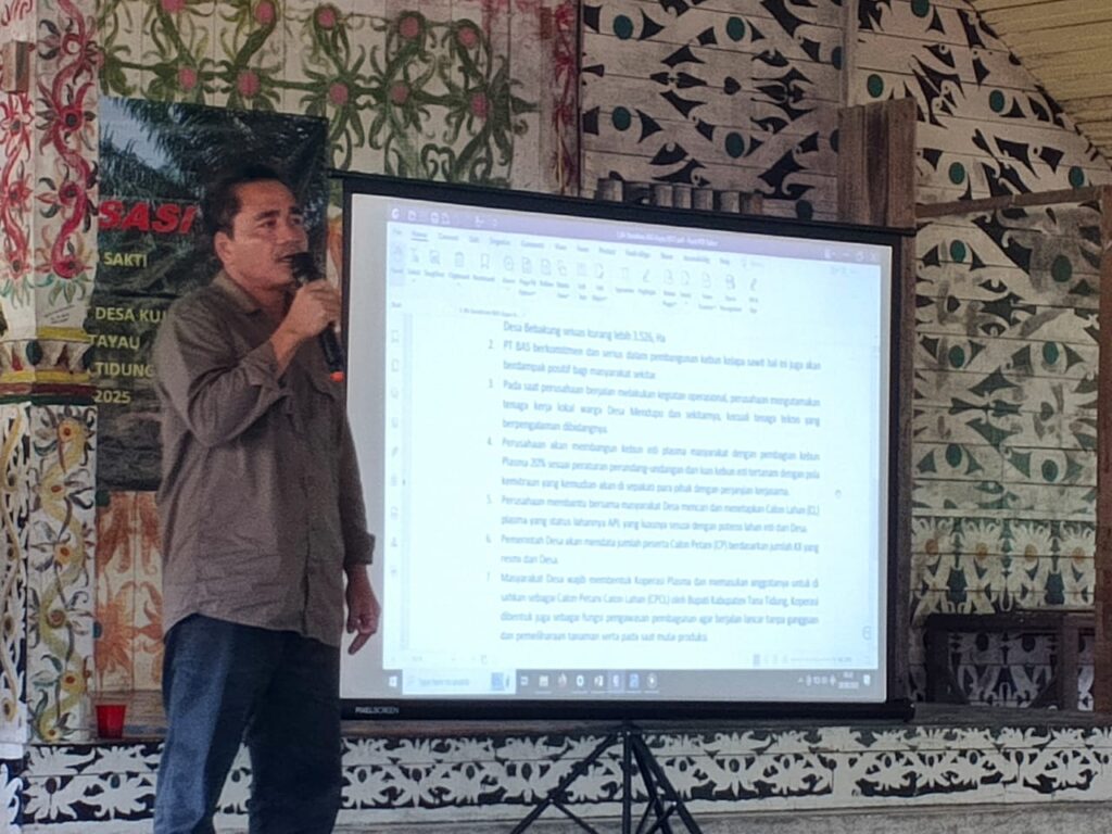 ‎TANA TIDUNG — PT Borneo Agro Sakti (BAS) bersama Dinas Pertanian, Perikanan dan Pangan Pemkab Tana Tidung kembali menggelar sosialisasi kepada masyarakat Desa Kujau, Kecamatan Betayau, di Balai Adat Kujau, Rabu (22/10/2025).