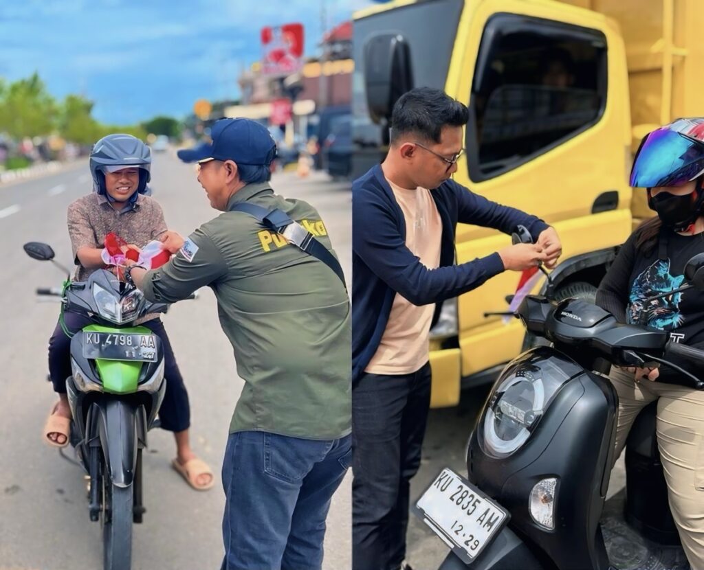 Antusiasme pengendara sangat terlihat, beberapa dari mereka dengan sukarela menerima dan mengibarkan bendera sebagai bentuk partisipasi aktif menyemarakkan peringatan kemerdekaan.