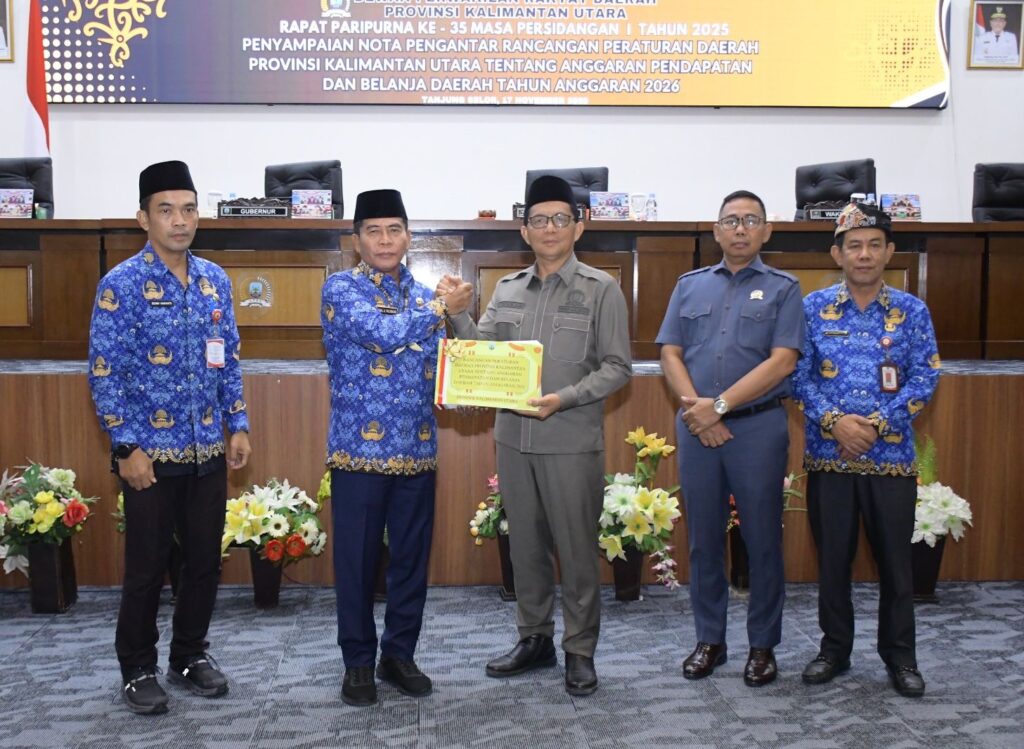 TANJUNG SELOR – Gubernur Kalimantan Utara (Kaltara) Dr. H. Zainal A. Paliwang, S.H., M.Hum menghadiri Rapat Paripurna ke-35 Dewan Perwakilan Rakyat Daerah (DPRD) Provinsi Kaltara, dengan agenda Pengantar Nota Keuangan Rancangan Peraturan Daerah (Ranperda) Provinsi Kaltara Tentang Anggaran Pendapatan dan Belanja Daerah (APBD) Tahun Anggaran 2026.