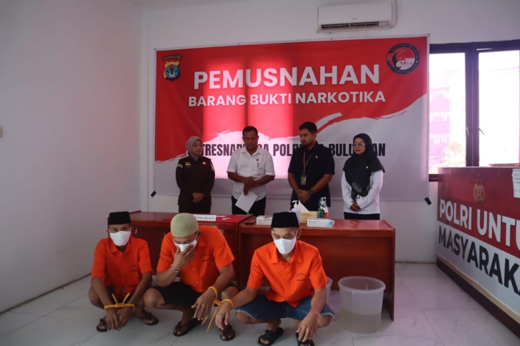 PUBLIKA TANJUNG SELOR- Satuan Reserse Narkoba (Sat Resnarkoba) Polresta Bulungan melaksanakan pemusnahan barang bukti narkotika jenis sabu-sabu seberat 55,85 gram hasil penangkapan terhadap tiga orang tersangka berinisial IR, SA, dan AF pada Rabu, 22 Oktober 2025. Pemusnahan barang bukti ini dilakukan di Ruang Sat Resnarkoba Polresta Bulungan dan disaksikan langsung oleh ketiga tersangka serta perwakilan sejumlah institusi terkait.