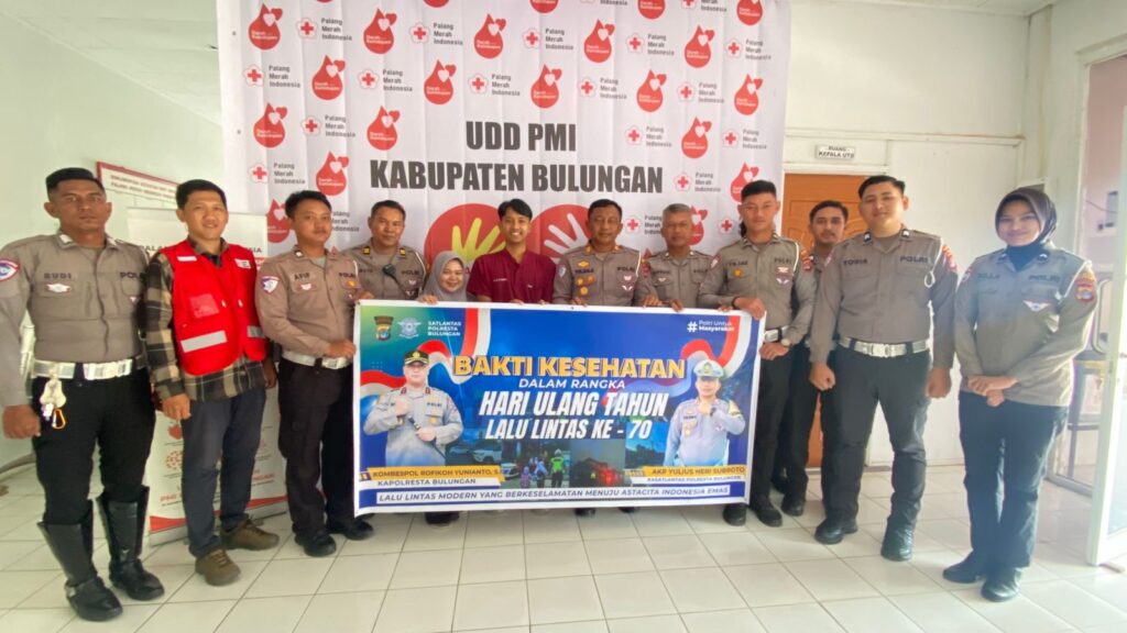 PUBLIKA TANJUNG SELOR- Kapolresta Bulungan Kombes Pol.Rofikoh YUNIANTO Melalui Kasi humas Iptu Magdalena Lawai,”Dalam rangka memperingati Hari Ulang Tahun (HUT) Lalu Lintas yang ke-70, Satuan Lalu Lintas (Satlantas) Polresta Bulungan melaksanakan kegiatan sosial berupa donor darah. Kegiatan tersebut diselenggarakan pada Selasa, 9 September 2025, mulai pukul 09.00 WITA hingga selesai, bertempat di kantor Palang Merah Indonesia (PMI) Kabupaten Bulungan.