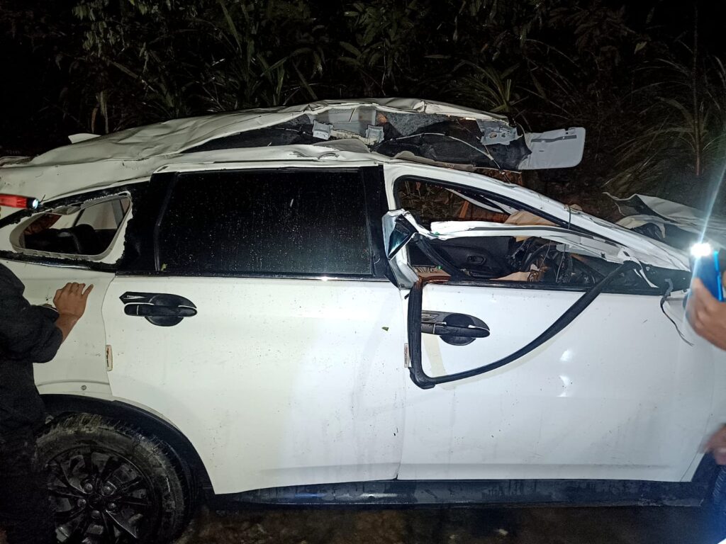 “Mobilnya mengalami slip ban dikarenakan kondisi jalan licin turunan gunung tikungan tajam sehingga pengemudi ini tidak dapat mengendalikan kendaraannya lalu menabrak pembatas jalan dan masuk ke jurang jembatan,” tuturnya.
